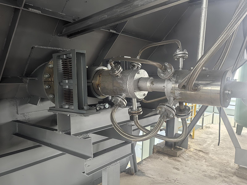 GeneralFlame has developed a rotary kiln SNCR denitrification system for rotary kiln flue gas. The core component, the rotary kiln SNCR denitrification lance (spray gun), atomizes urea solution or ammonia water into fine mist particles. These particles then mix and react chemically with the flue gas, removing nitrogen oxides (NOx) and achieving the goal of reducing NOx emissions. The rotary kiln SNCR system primarily consists of a urea solution preparation and storage tank area, a buffer support device, an internal kiln rotary support device, a spraying system, and related control systems.